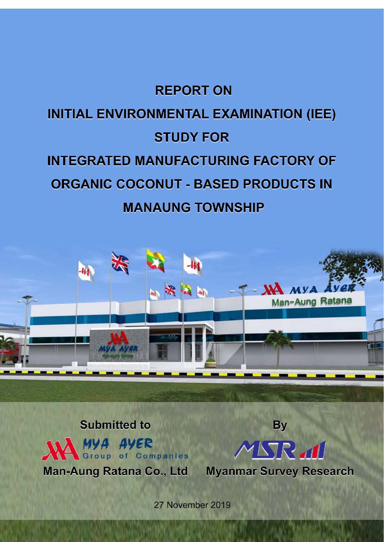 An Initial Environmental Examination (IEE) was conducted by Myanmar Survey Research (MSR) in compliance with the requirements of MIC and the Environmental Conservation Department (ECD) to assess potential environmental impacts and ensure regulatory compliance.