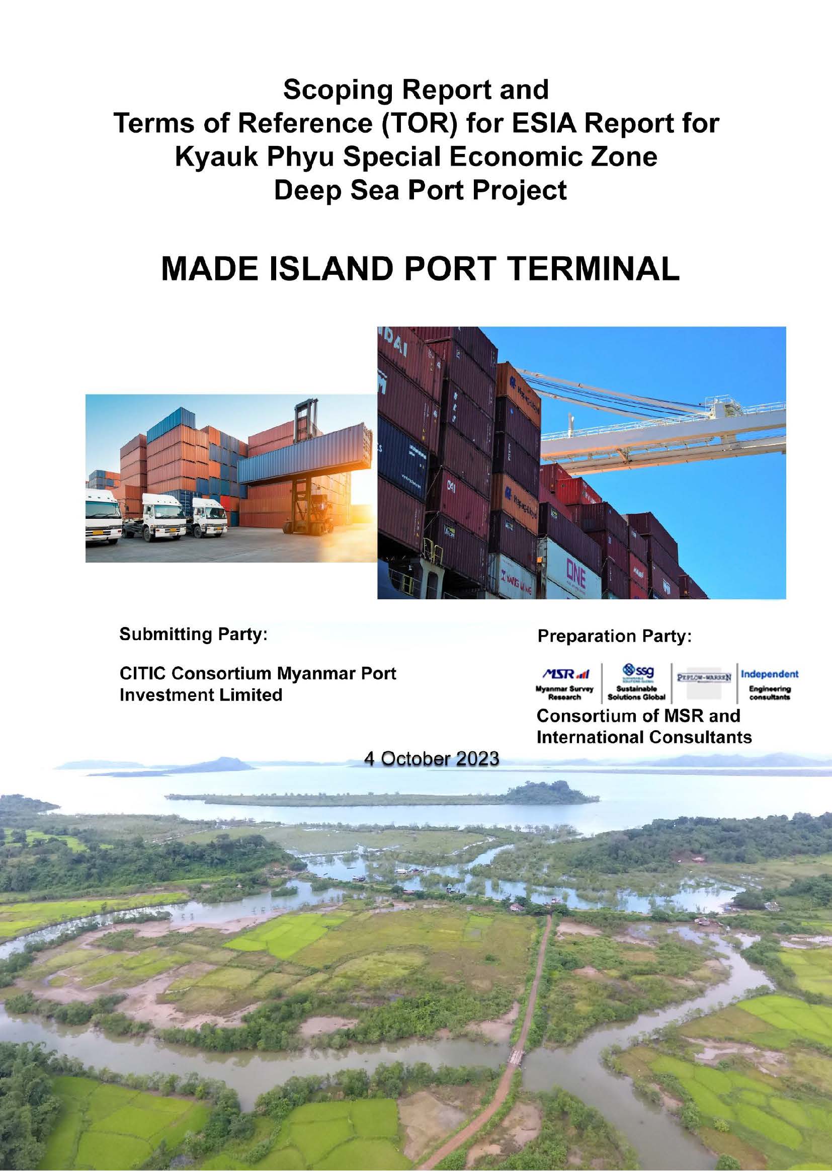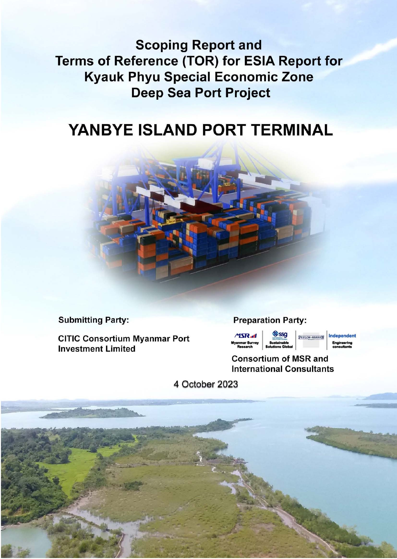 The Yanbye Island Port Terminal of the Project will be developed nearshore of Yanbye Island (northeastern). The project location is at about ten (10) nautical km southeast of Kyauk Phyu township. The four (4) berth multipurpose Yanbye Island Port Terminal of the Project will be developed on 96 ha (230 acres) of footprint area.